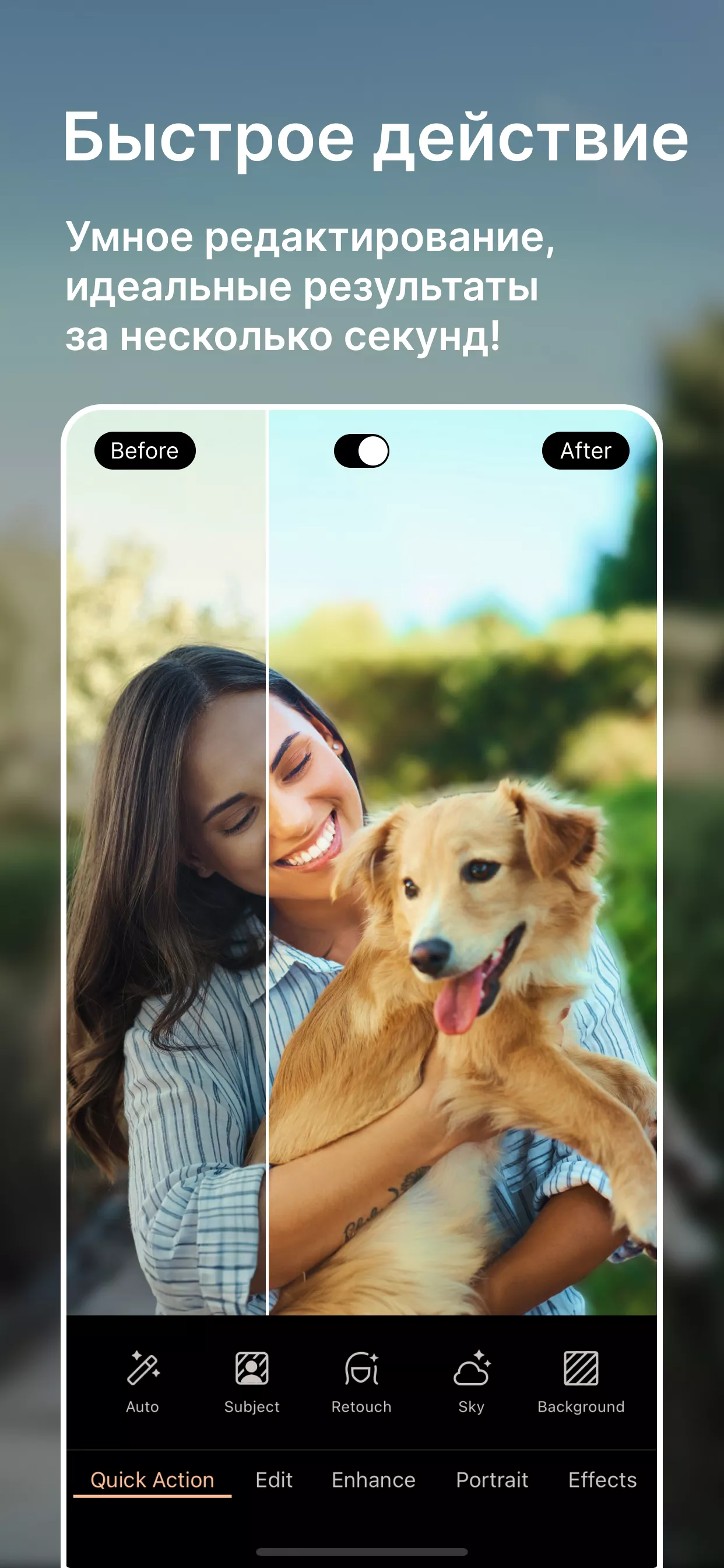 - Функции ИИ. Автоматическое распознавание объектов и лиц для более точного и быстрого редактирования.