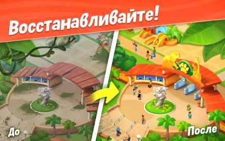 Wildscapes - это захватывающая игра в жанре три в ряд. В ней игроку предстоит помочь персонажам восстановить бывший зоопарк, превратив его в популярное место отдыха.