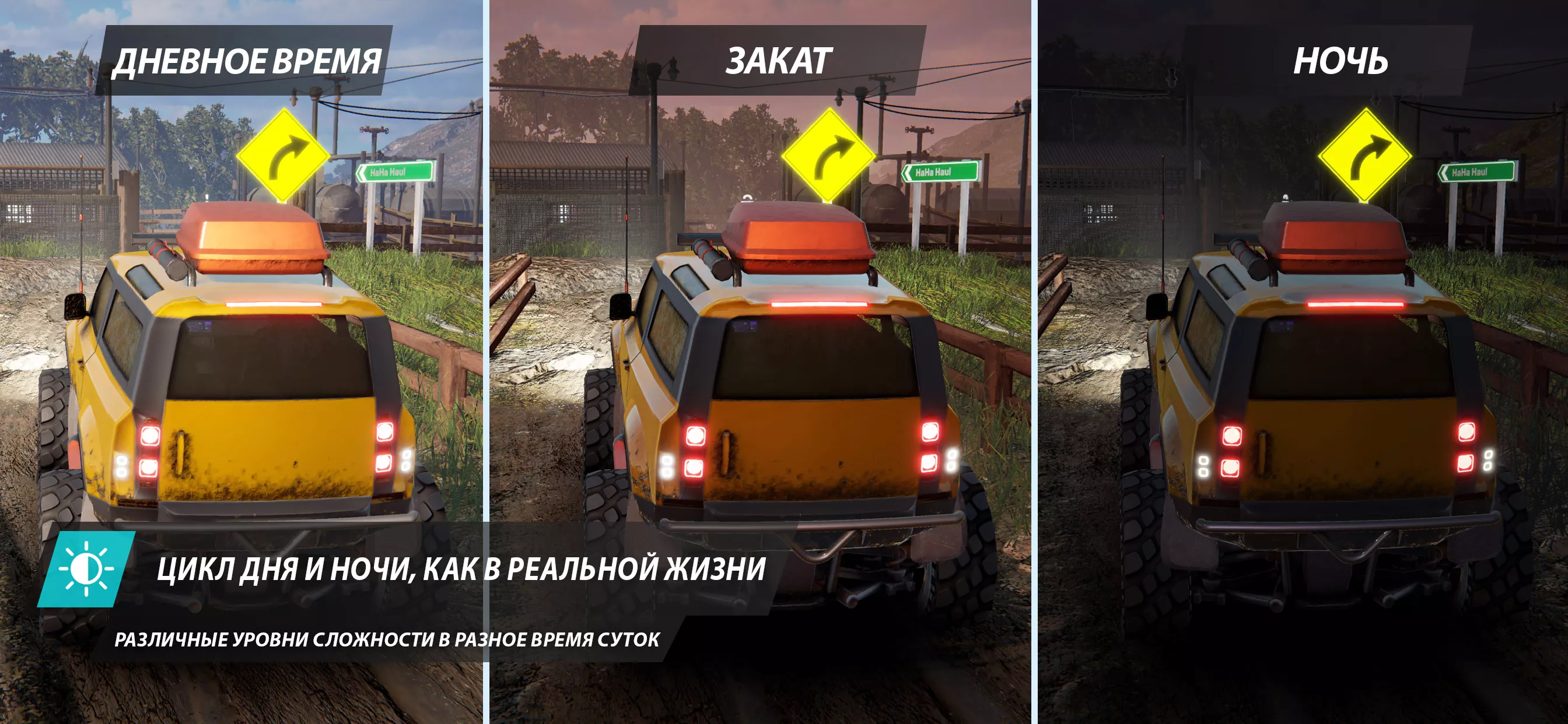 - тщательно продуманные детали движения автомобиля по бездорожью;
