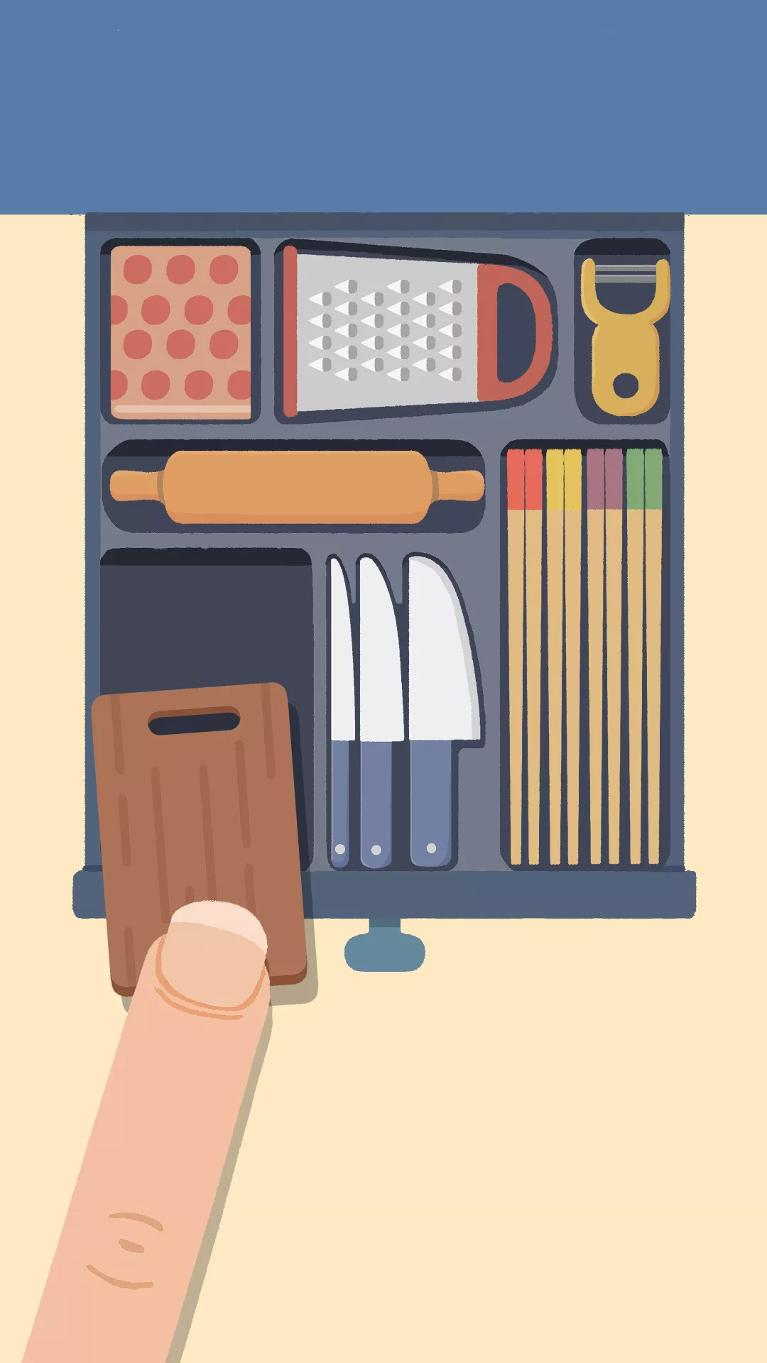 Это игра для тех, кто ежедневно испытывает стресс и не знает выхода. Задачи, требующие идеально организованного размещения, решаются прямо на экране мобильного устройства. Преодолевая эти трудности, игрок на время забывает о существующем хаосе. Он наводит порядок на экране, проецируя его на окружающий мир. Игра снимает стресс с помощью легких викторин. Это простая, компактная игра-головоломка, выполненная в рисованном стиле и минималистичной цветовой гамме. С помощью всего лишь нескольких картинок на чистом цветном фоне ситуация становится более понятной.