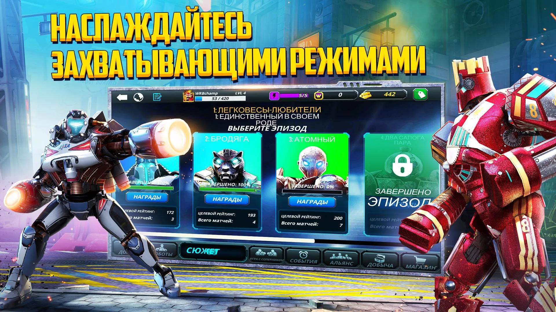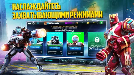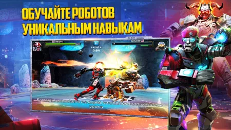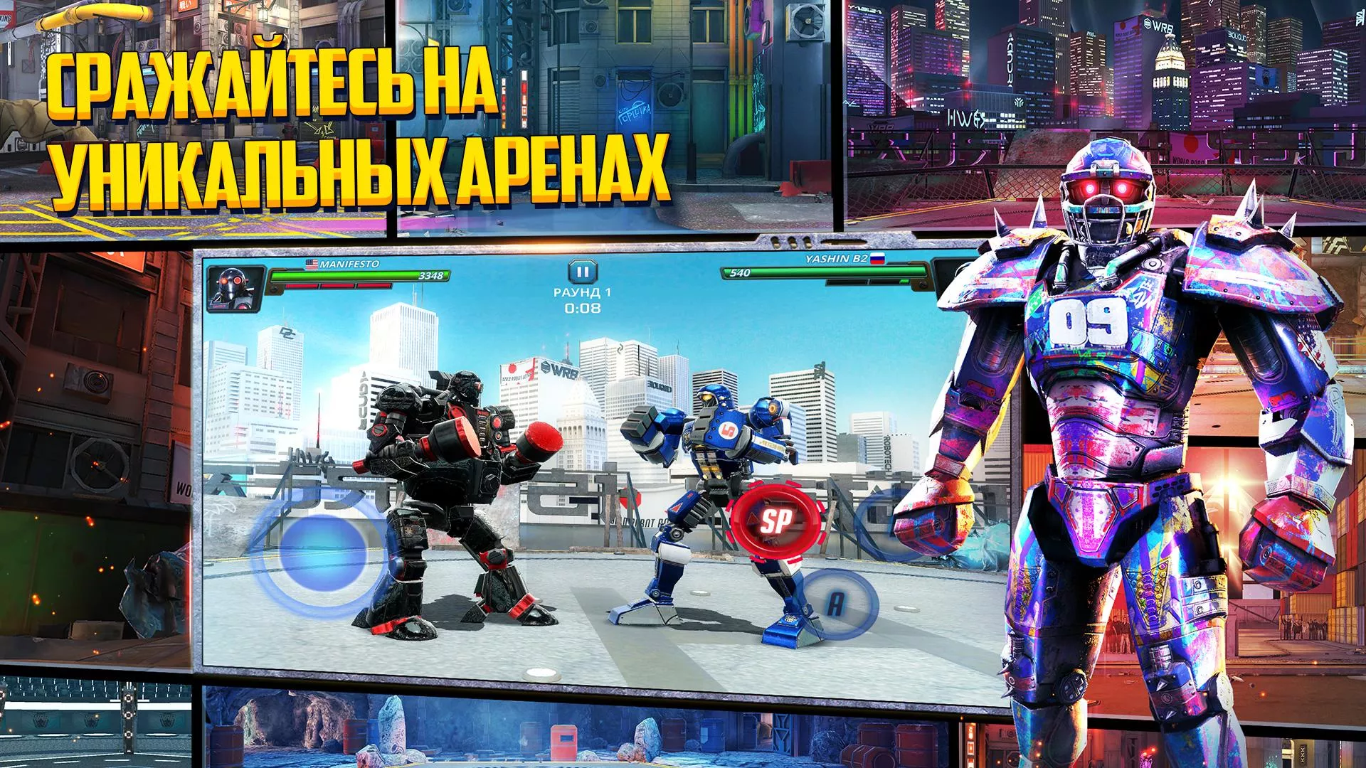 - открытые корты или закрытые подвальные арены раскрашены в соответствии с контекстом, на теле роботов появляются вмятины и царапины от ударов;