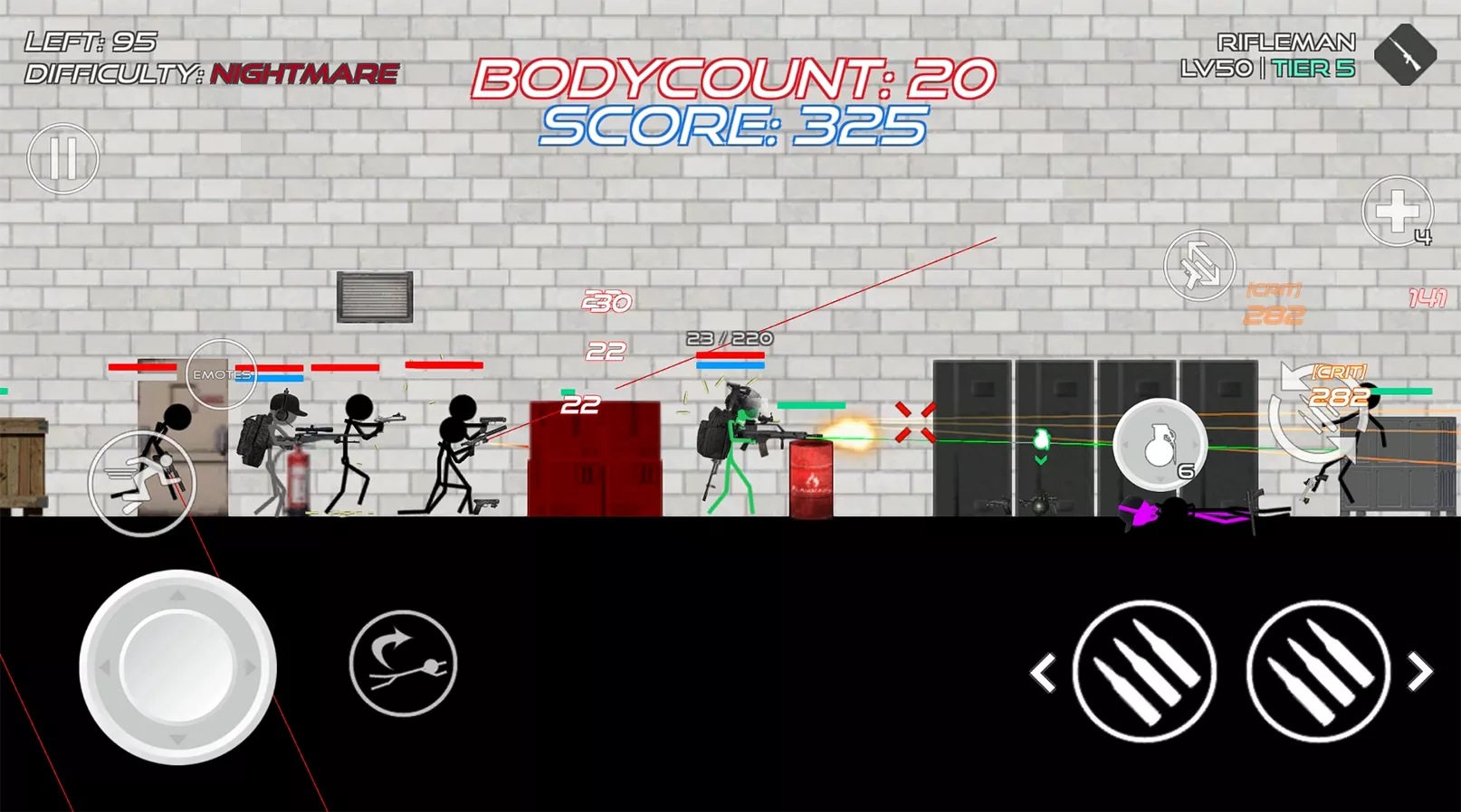 Stick Warfare: Blood Strike — шутер в 2D-формате, в которой игроки будут управлять стикменом, чтобы уничтожать постоянно появляющихся врагов. Каждая локация имеет свой собственный дизайн, и некоторые элементы, такие как двери, будут местами, откуда могут появиться враги.