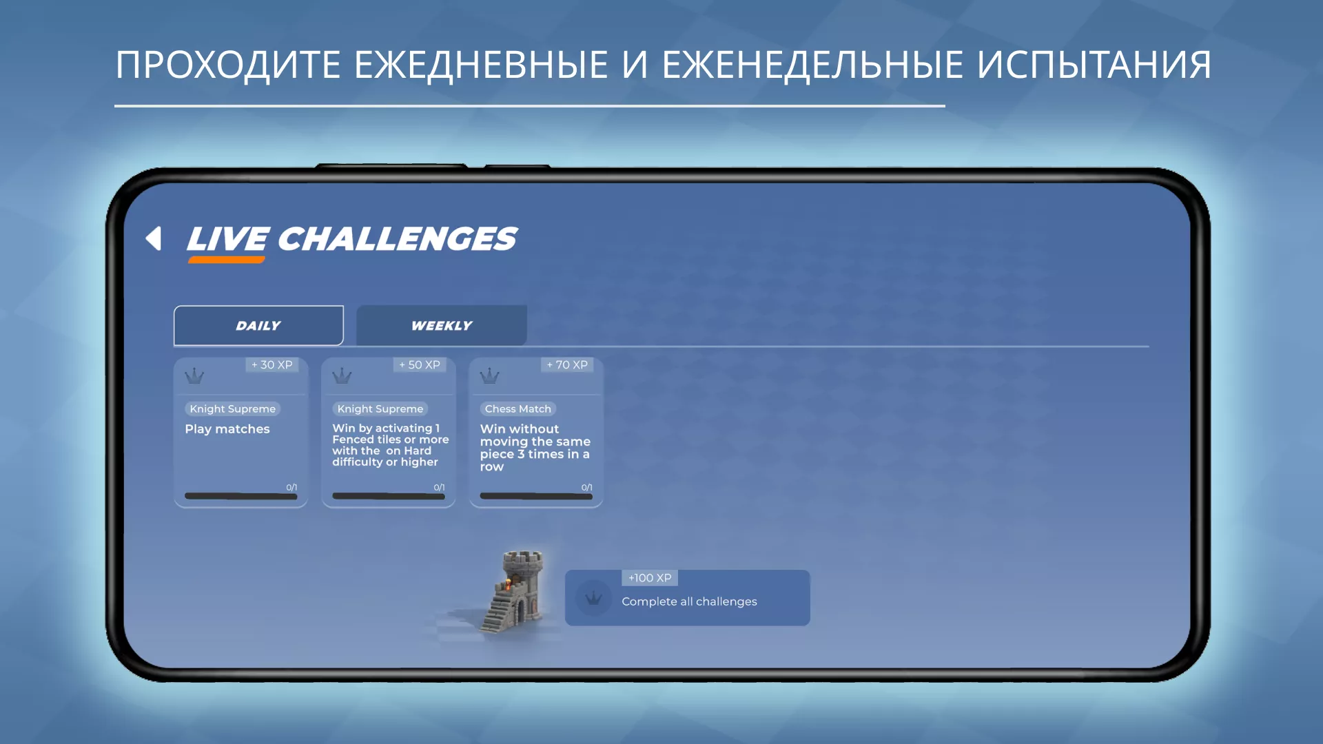 Благодаря множеству подробных обучающих уровней, эта игра легко доступна многим игрокам. Даже если вы не сильны в шахматах, вы все равно можете легко проходить уровни, тренировать тактическое мышление. Здесь нет специальной шахматной доски. Уровни основаны на различных мини-играх с возможностью перемещения фигур, таких как Конь, ферзь, Слон, Король. На каждом уровне есть определенное количество квадратов и сбалансированная головоломка, которую вы должны решить, перемещая каждую фигуру.