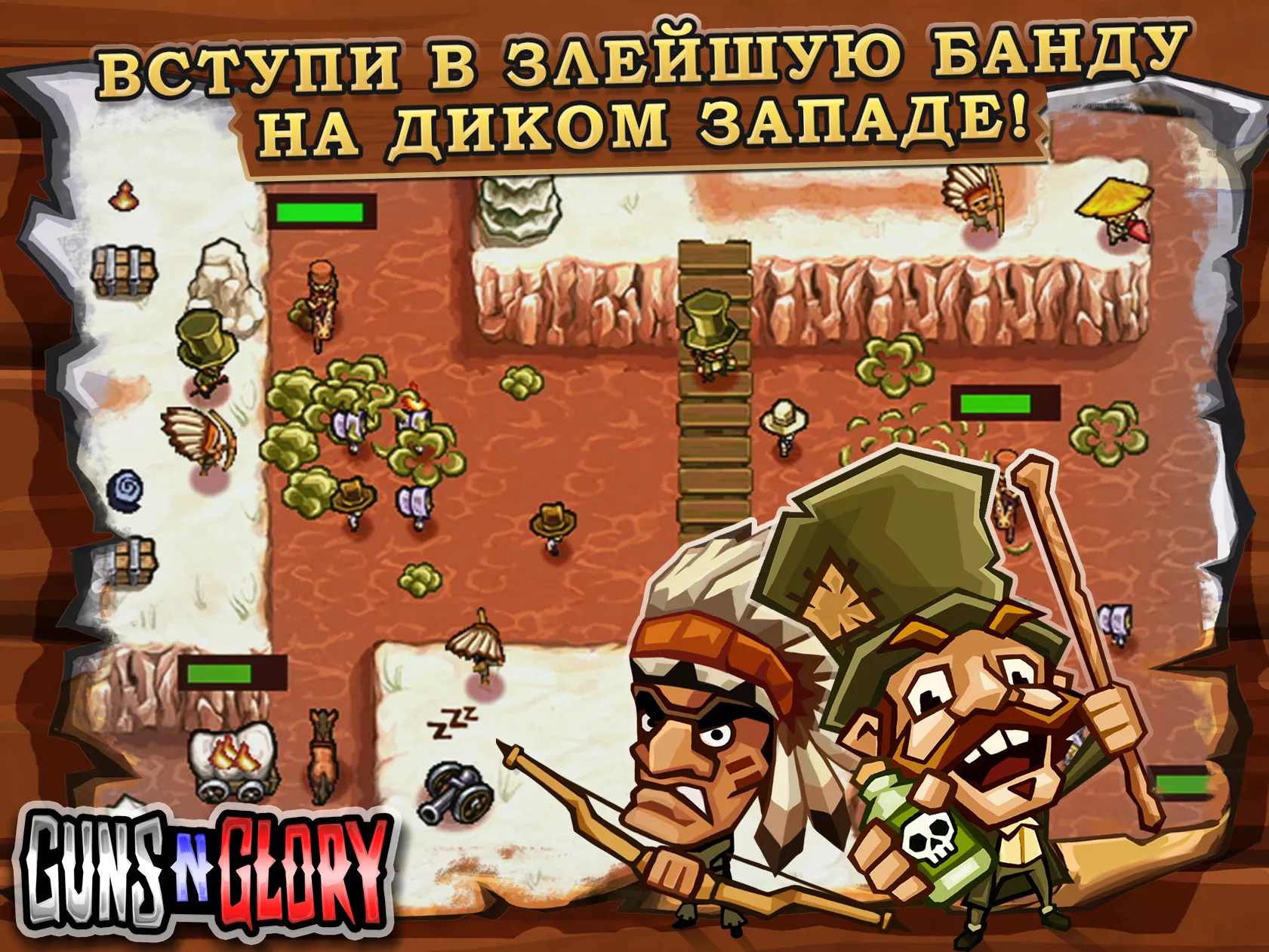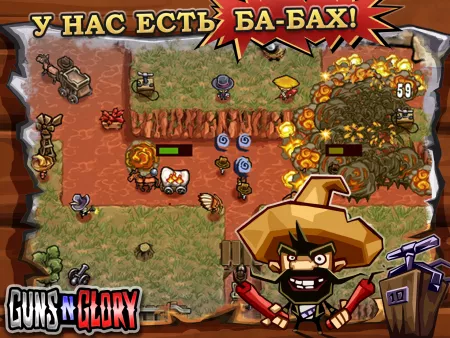 Guns'n'Glory Premium — веселая стратегия-вестерн на тему Дикого Запада. Надоело играть за хороших героев? Сыграйте за плохого парня! Любой, кто пройдет через вашу территорию или каньон, должен заплатить за это. Выбирайте место и тактику для засады.