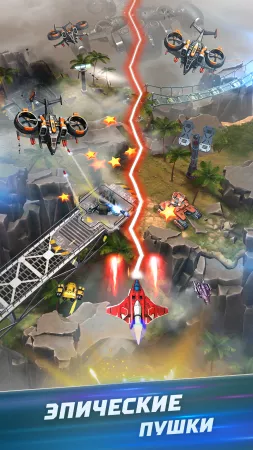 Вселенная находится под угрозой. На мирные планеты нападают орды врагов под командованием злобного искусственного интеллекта. Только вы можете противостоять этим галактическим угрозам. Соберите свои силы и вступайте в бой! Объединяйтесь с друзьями в оффлайн-играх на боевых самолетах. Проходите уровни, наполненные захватывающими визуальными эффектами и стратегическими битвами. Сразитесь с грозными боссами, каждый из которых обладает уникальными способностями. Садитесь за штурвал реактивного истребителя wing и уничтожьте всех врагов! Да поможет вам небесная сила!