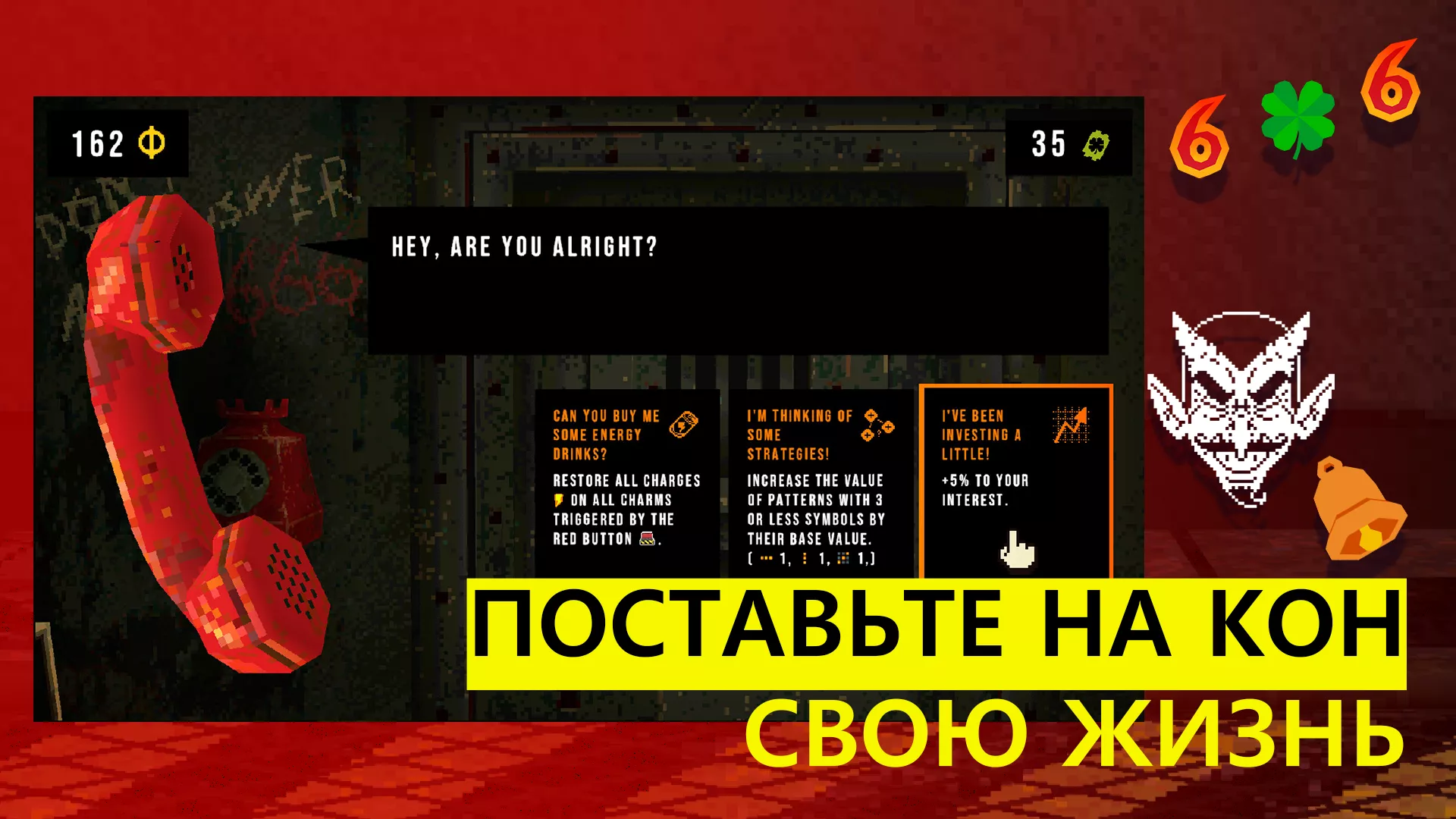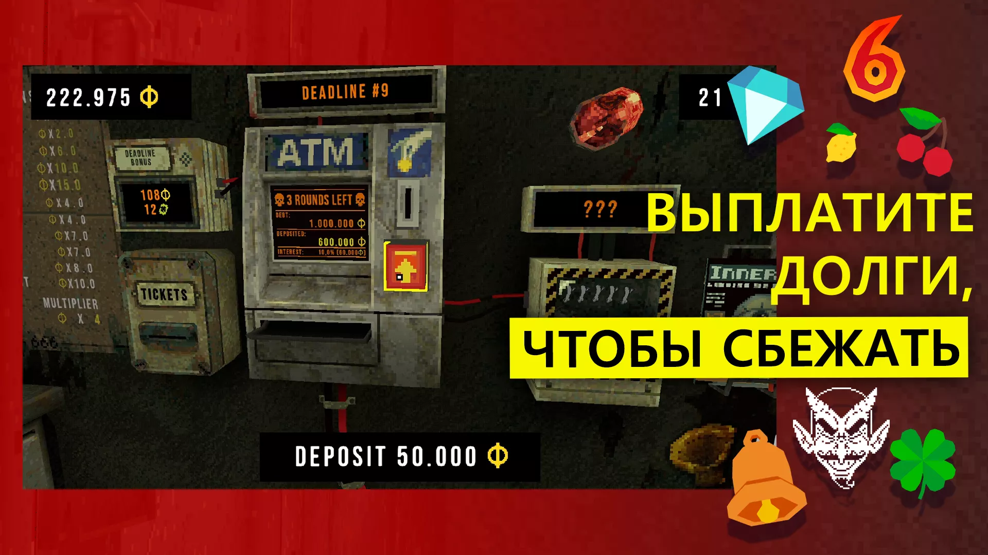 - Lucky charms можно приобрести только по билетам clover (они будут выдаваться после каждого раунда, если вы успешно погасите свой долг).