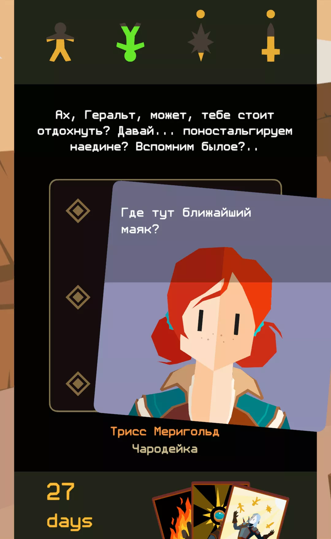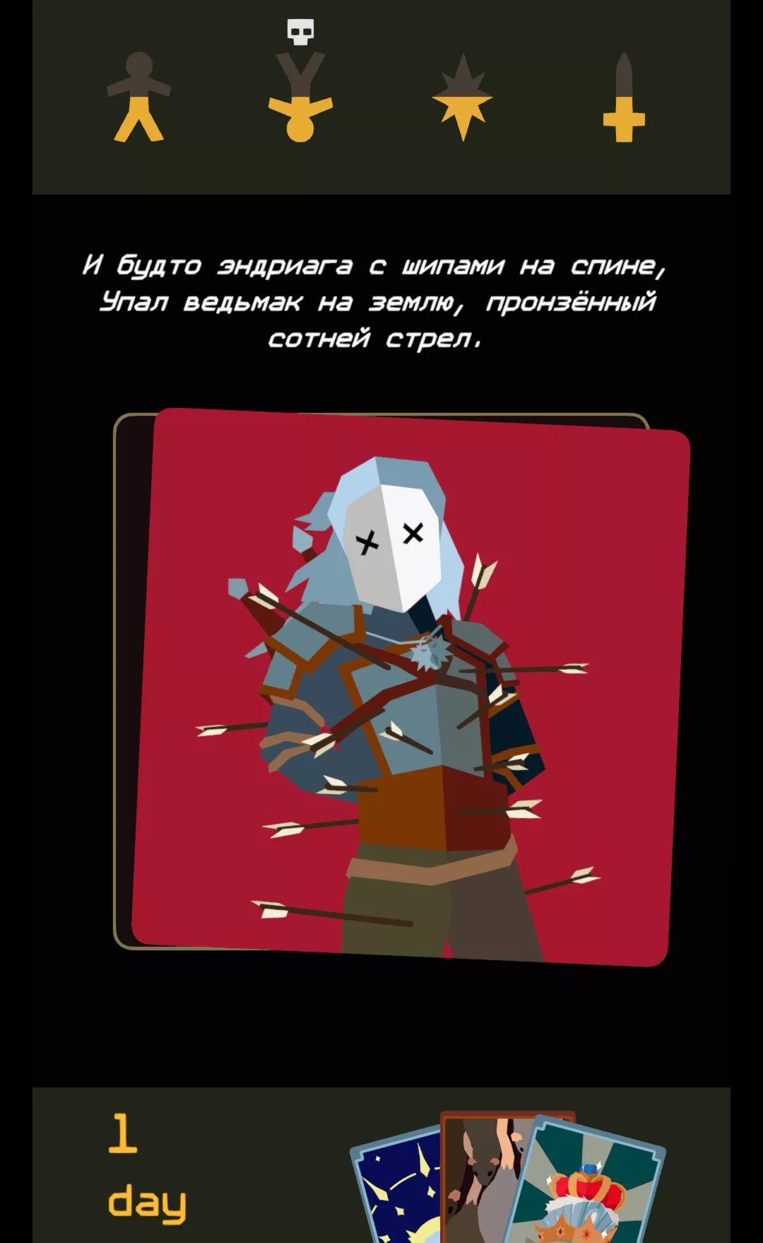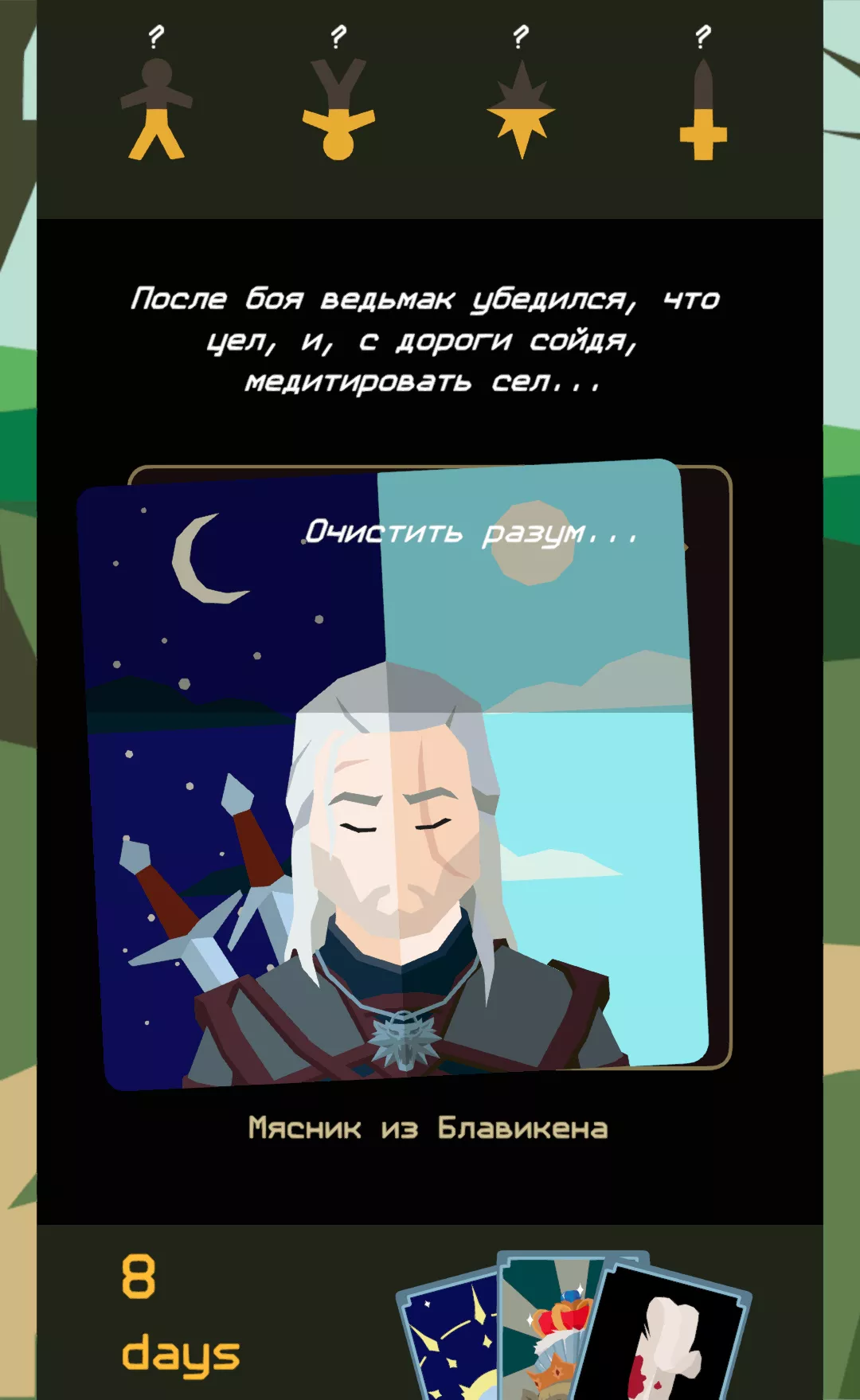 Reigns: The Witcher — мрачный симулятор охотника на монстров. В основе игрового процесса лежит карточное приключение, где каждое действие может решить вопрос существования этого мира. Из этого вытекает нелинейность сюжета и наличие нескольких вариантов концовок.