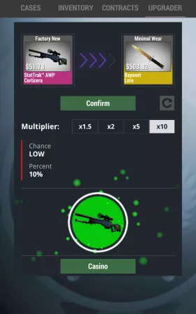 Перед тобой – целый арсенал разнообразных кейсов, каждый из которых хранит в себе уникальные предметы. От скинов для оружия до ножей и перчаток – выбор огромен! Твоя задача – выбрать кейс, нажать на кнопку и с замиранием сердца наблюдать, как барабан крутится, а затем останавливается, показывая твой долгожданный приз. Это, пожалуй, главная фишка игры. Чувство, когда ты открываешь кейс, зная, что внутри может быть что-то невероятно ценное, – это то, что заставляет возвращаться снова и снова. Все выигранные предметы собираются в коллекции.