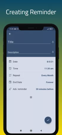 It's impossible to grasp everything, especially in the fast pace of modern life. That's why the developers created a system that will constantly remind you of meetings, tasks that need to be completed by a certain date, deadlines, necessary calls, and other urgent matters. You can create one-time or recurring reminders that will activate at a set time. The app will help you stay on top of your plans and keep up with them.