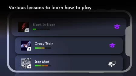 The game simulates a real guitar. You'll feel the strings and notes on each finger, giving you the sensation of touching real strings. If you don't know how to play the guitar, the game provides an online tutor. You'll be taught from basic to advanced levels, helping you learn to play the guitar in just a few lessons. The lessons in the game are also extremely varied, allowing you to learn based on your level. The game features engaging gameplay and song-based levels. Everything is designed to quickly immerse you in the game without the slightest boredom.