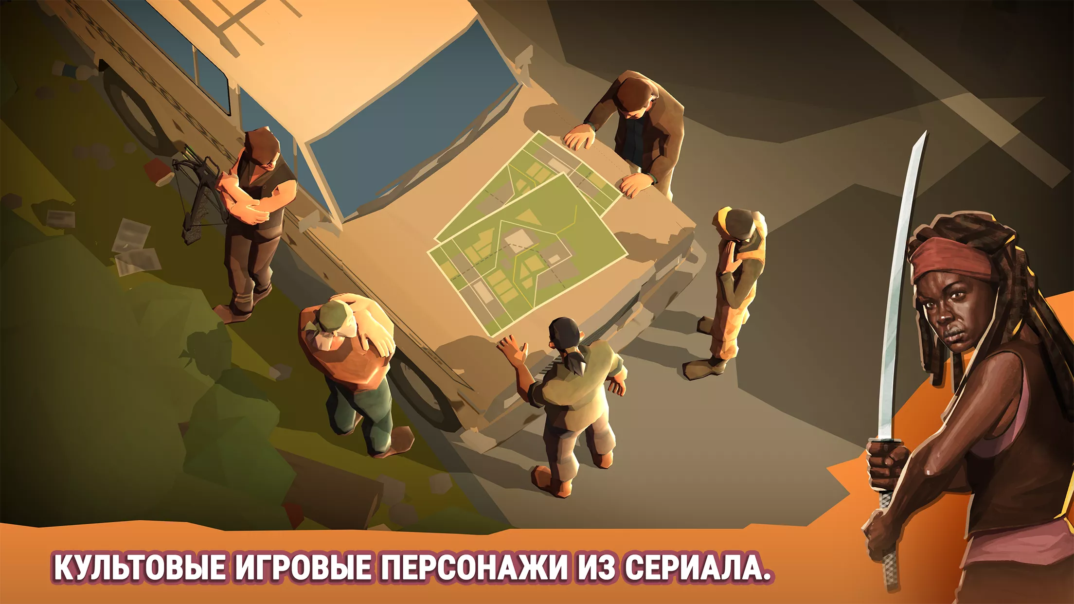 A small group of survivors must survive to save human civilization. They battle hordes of the walking dead. They will build bridges and other structures amidst bleak landscapes and ruined buildings. The player will team up with beloved characters like Daryl, Michonne, and Eugene to create safe passage for vehicles. This is accomplished using moving objects in the environment, explosives, and bait to lure zombies into deadly traps. This is done to lead the survivors to safety.