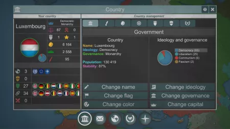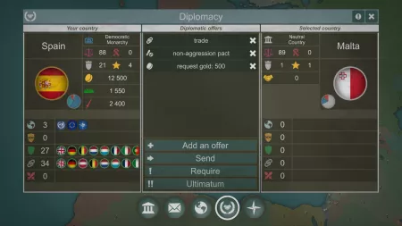 As a purely military strategy game, the game has no specific plot or context. In reality, it exists only in a vast world with real countries. Each country has realistic characteristics in terms of economy, military, domestic politics, diplomacy, technology, and so on. Therefore, managing these countries is not easy. Players must understand when to advance and when to retreat to preserve their empire and army. This is an excellent game for those who want to demonstrate their managerial talent and military strategy.