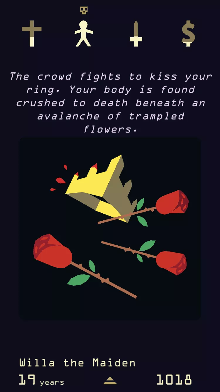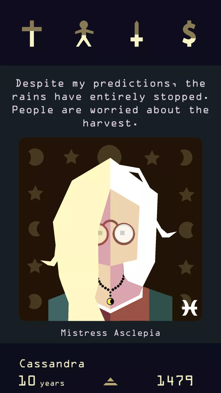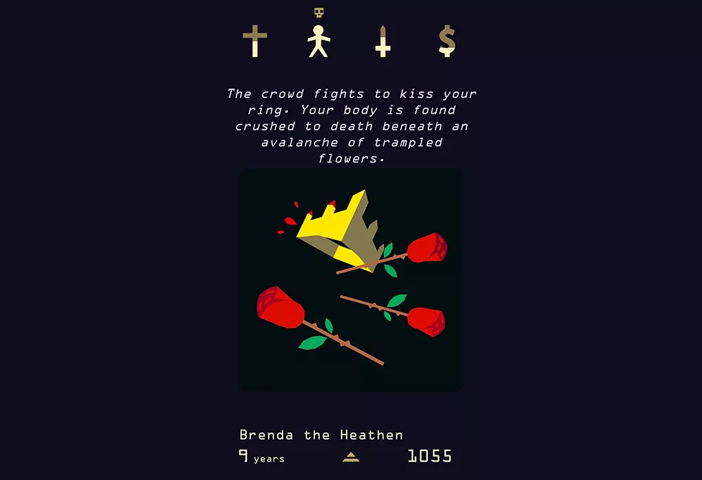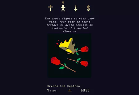 A plot against the king is brewing in the palace. Outwit and survive those who would overthrow you as the queen and your husband, wielding your power to make just (or unjust) decisions in all manner of royal affairs. Maintain balance between the kingdom's most powerful factions, use mystical items from your inventory, and navigate the complex politics and personal relationships of your dynasty.