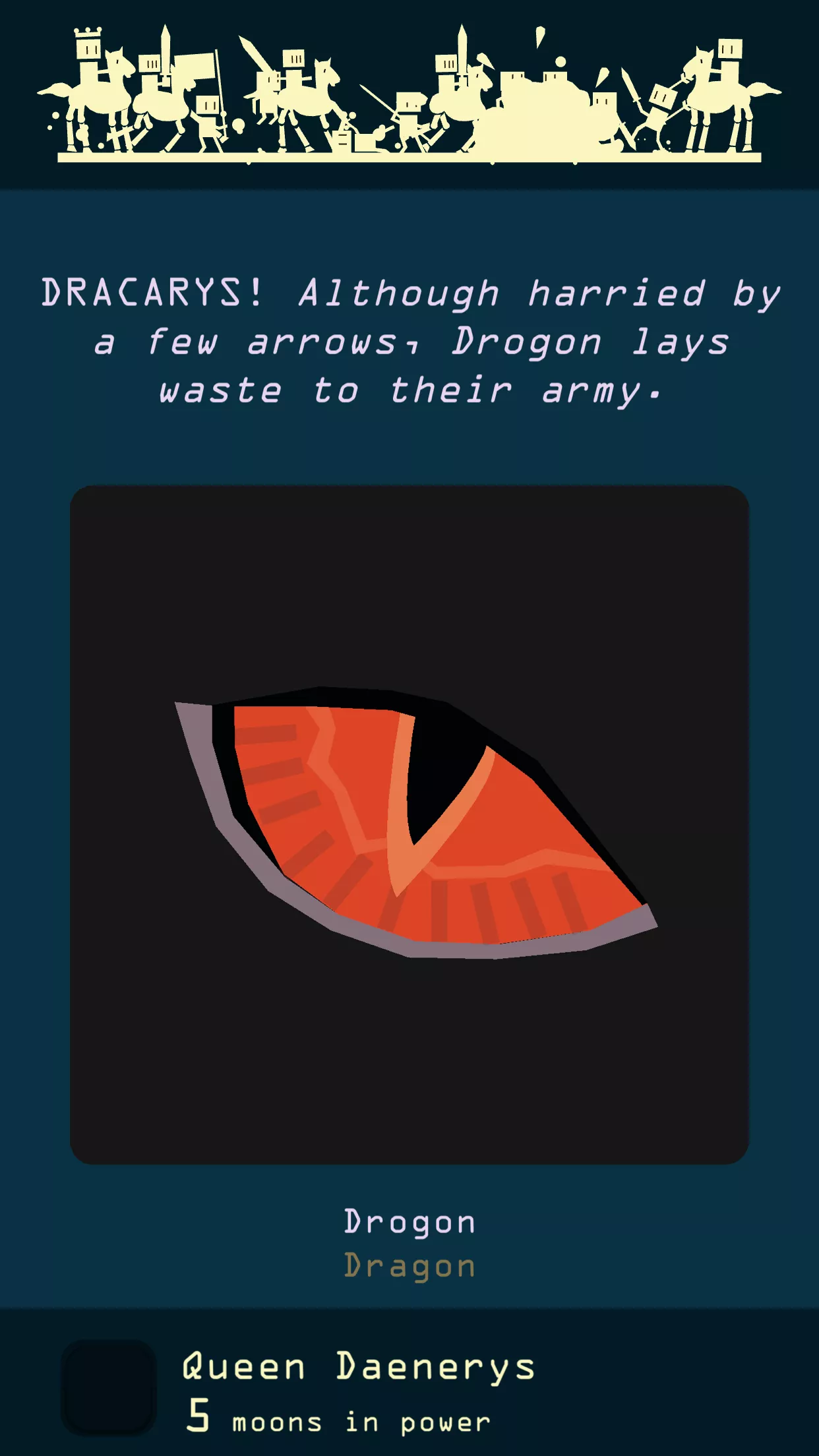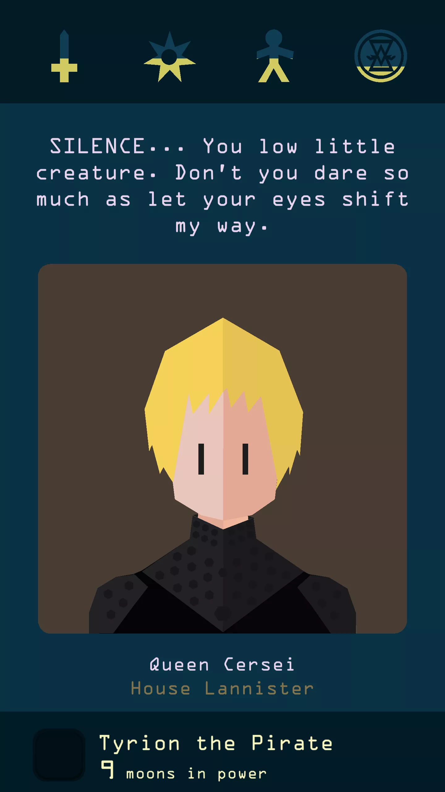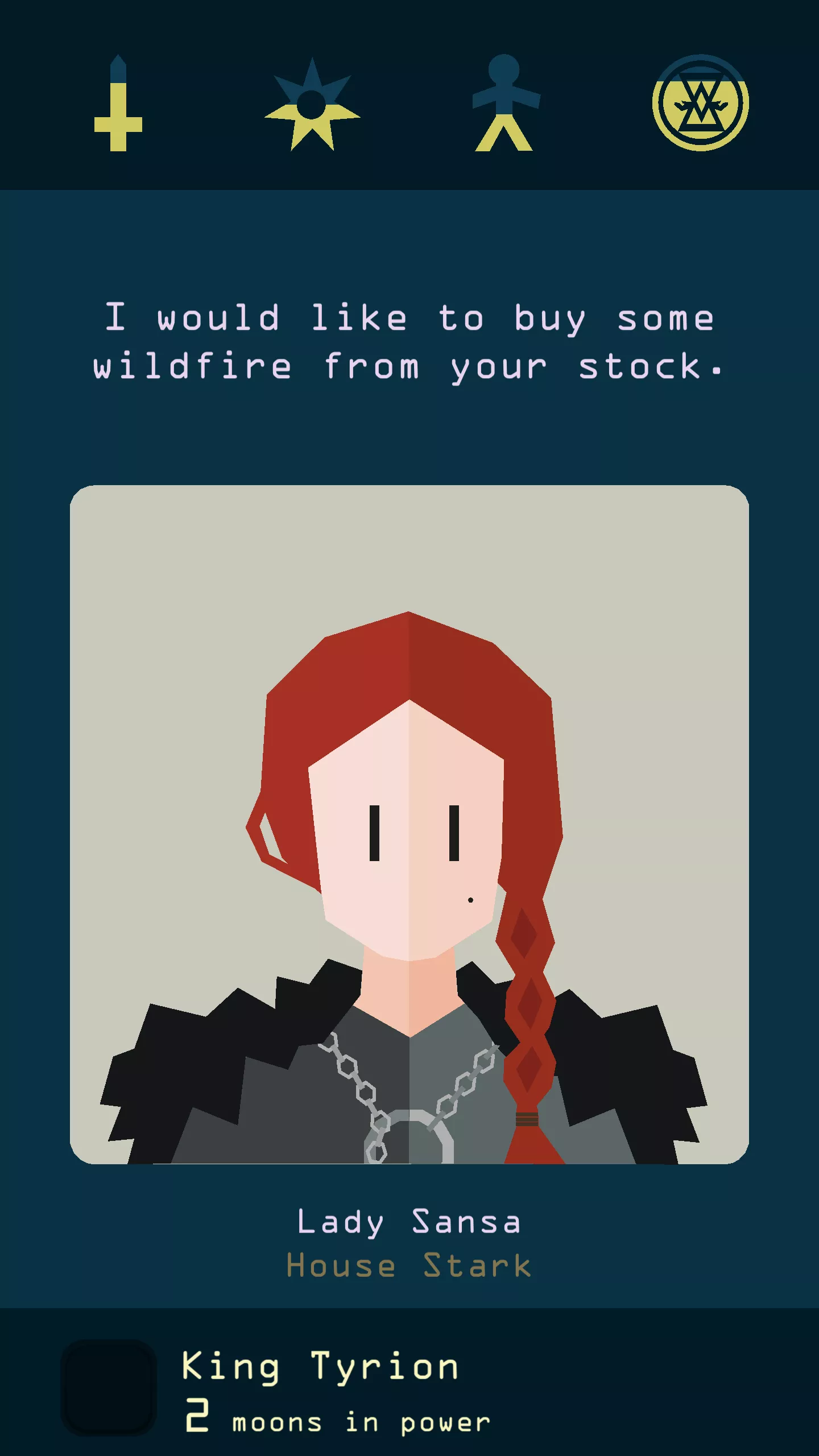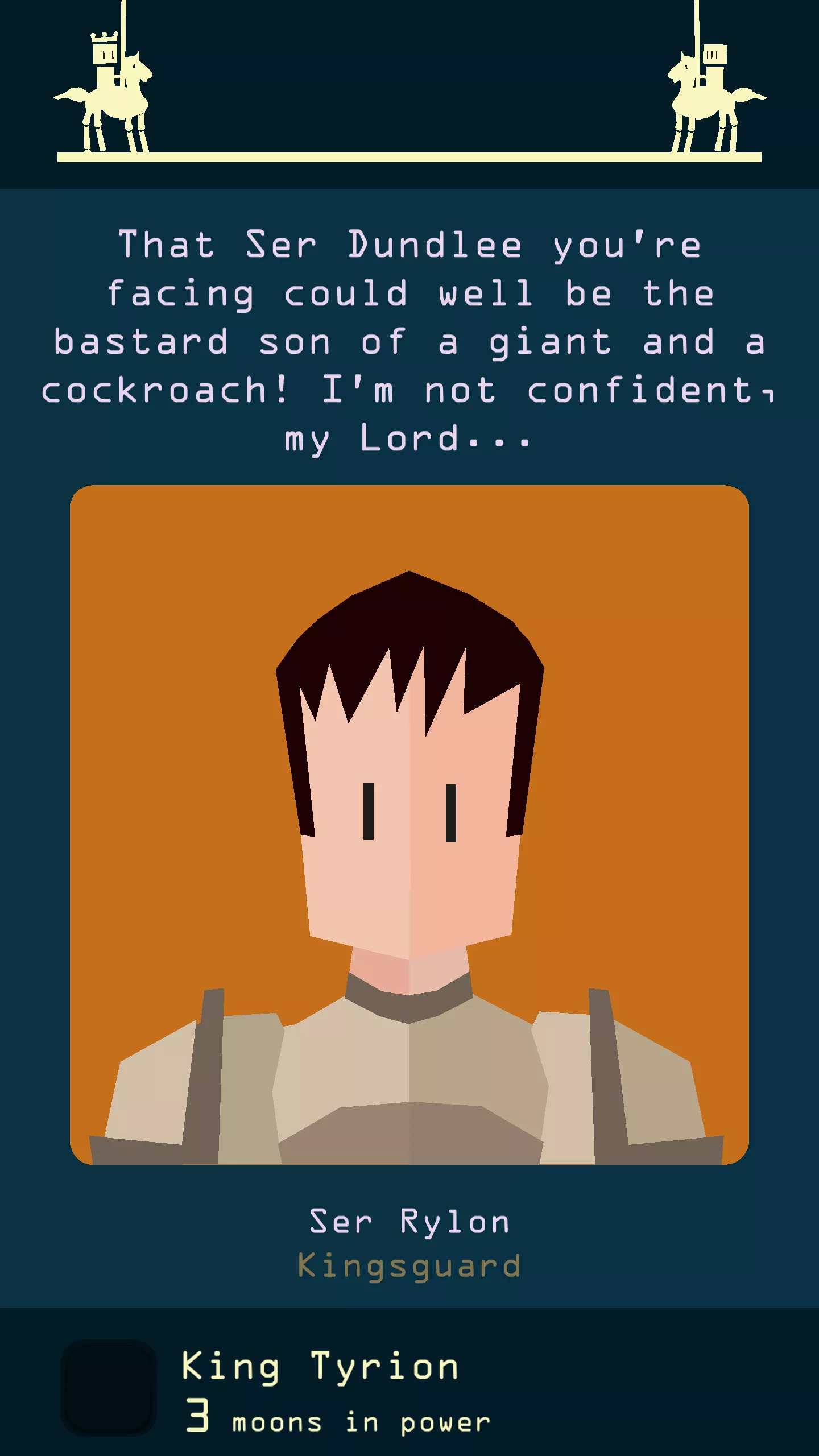 The plot is inspired by the famous Game of Thrones franchise. Will you be able to maintain power, preserve the peace, and avoid becoming the next victim of Westeros's bloody intrigues? Only time and your decisions will tell. For example, an envoy comes to you asking for funds to build a new castle. You swipe right—the funds are allocated, the treasury is empty, but the army is satisfied. Or you swipe left—the treasury is intact, but the army is dissatisfied and may revolt. If you love George R.R. Martin's world, this game will immerse you in it and feel like you're part of it.